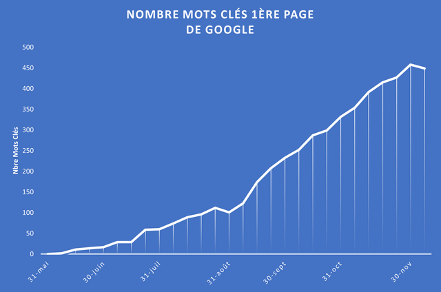 En seulement 6 mois, la visibilité de ma-propriete.fr, et donc de vos annonces, a explosé sur Google et sur les autres moteurs de recherche : nombre de pages référencés, termes de recherche, position en 1ère page de Google, ... Et nous complétons ce travail de référencement naturel par des actions commerciales sur différents supports.