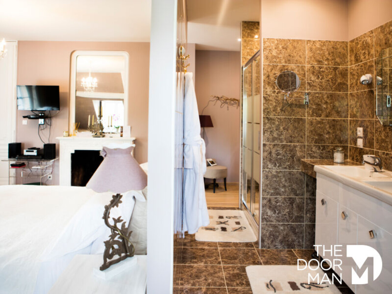 - Suite de 33m² avec cheminée ancienne, bibliothèque et sa salle de bain jacuzzi et douche,
