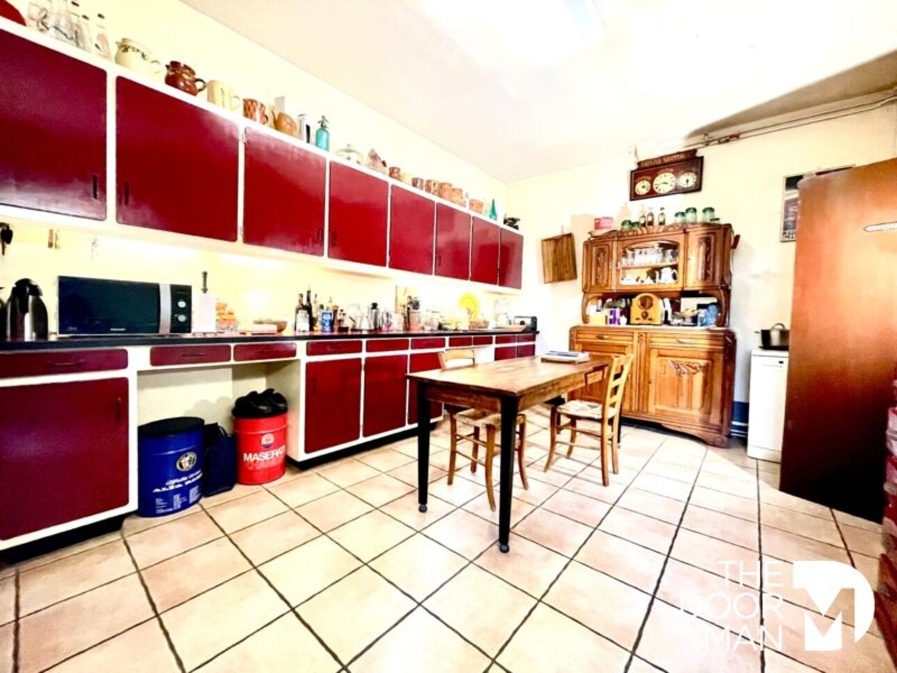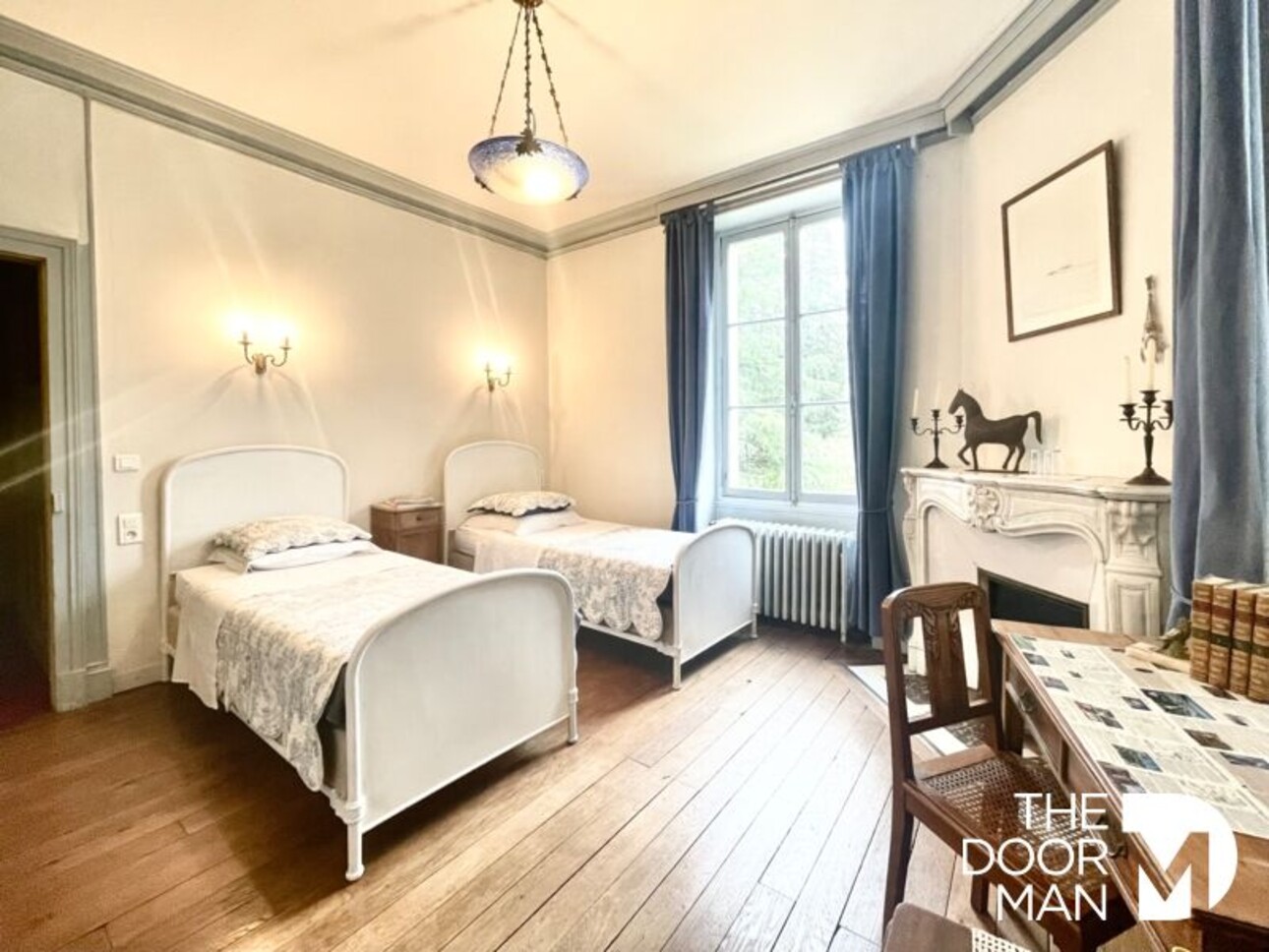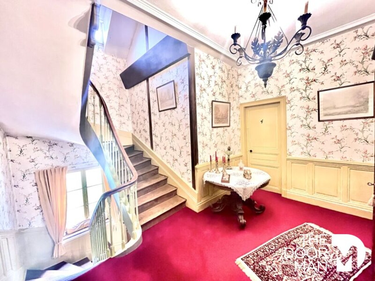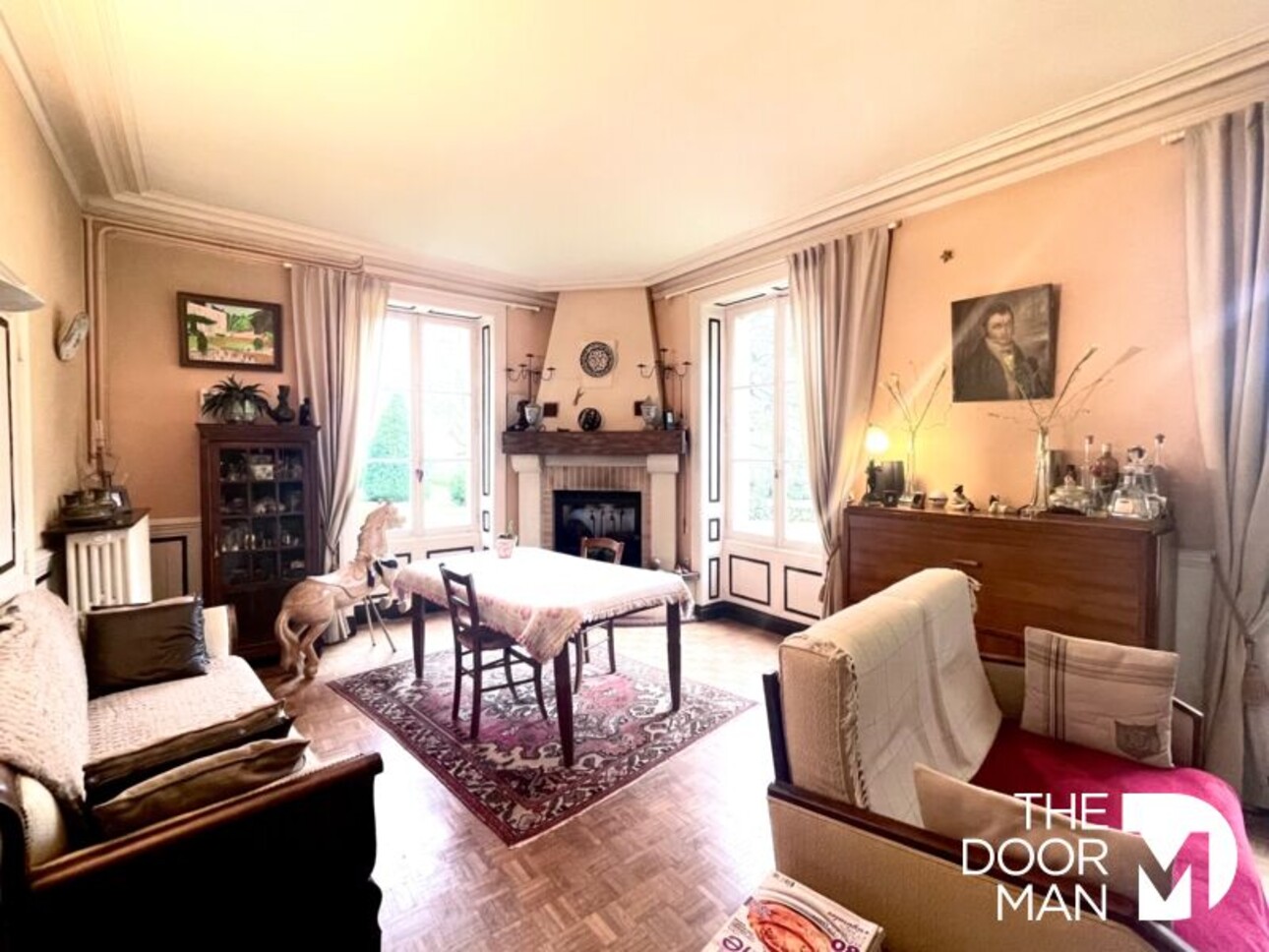 - Une maison de maître sur trois niveaux avec entrée, bibliothèque, salle à manger, une cuisine très spacieuse à moderniser, une salle d'eau/toilettes, un grand escalier, deux chambres avec leur salle de bain et deux chambres (possibilité d'une cinquième chambre).