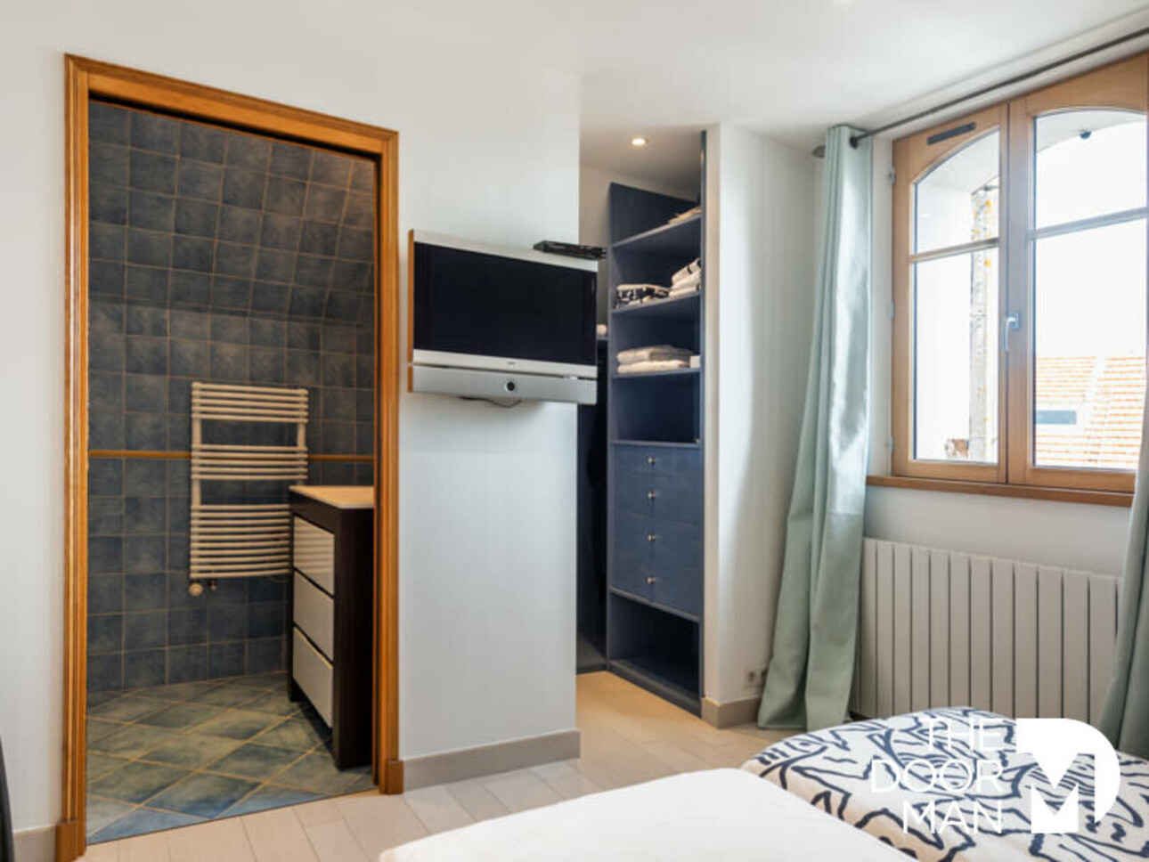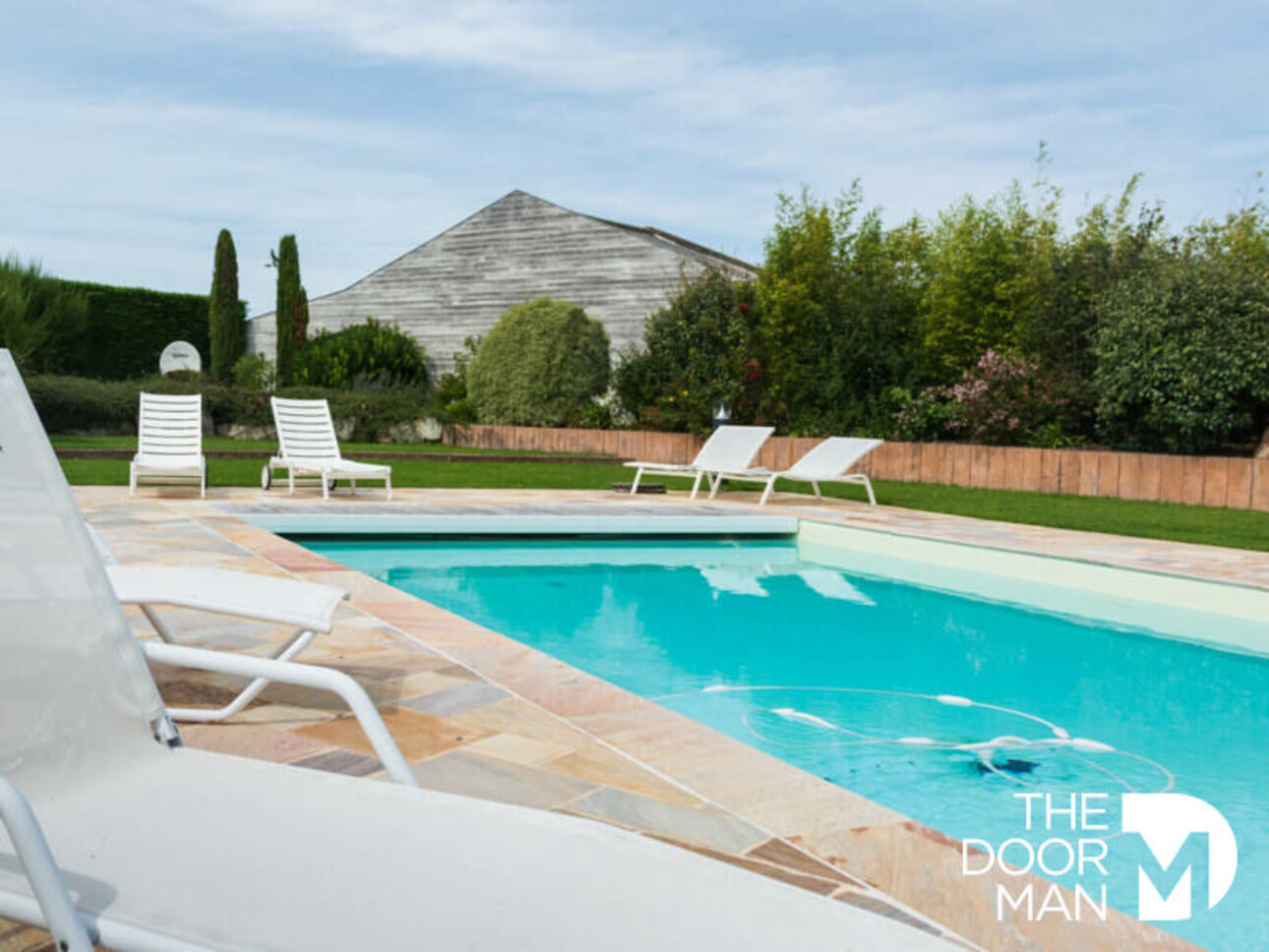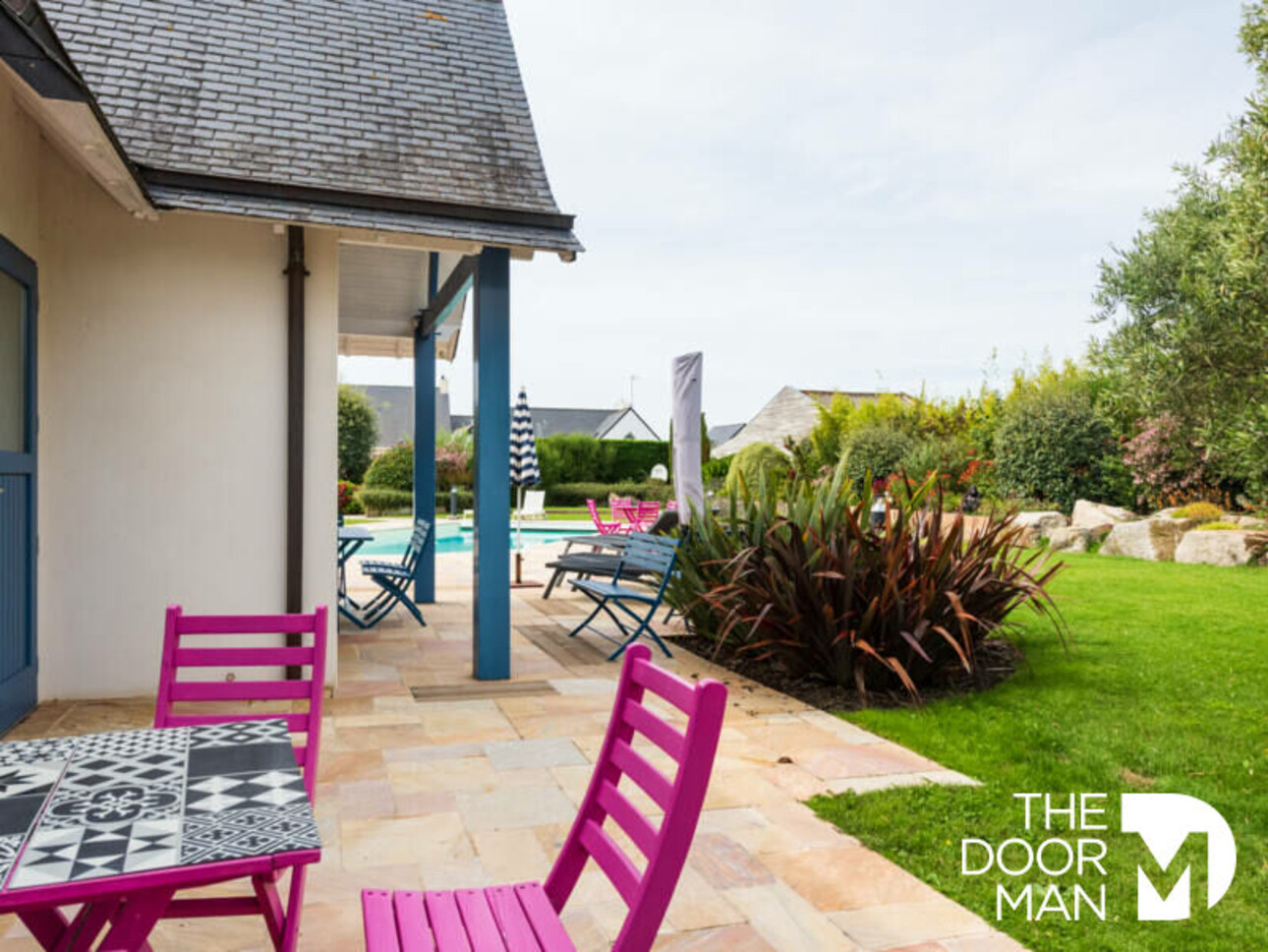 Sur la commune du CROISIC à deux pas du centre ville, au calme dans un quartier résidentiel et paisible. Exceptionnelles villas entièrement rénovées avec des matériaux d'excellentes factures. Cet ensemble de deux habitations avec annexes, permet d'acceuillir une à deux familles ou bien de profiter d'un patrimoine pouvant être mis à disposition pour des locations saisonnières par exemple. L'ensemble pourvu d'une très belle piscine, d'un pool house avec cuisine d'été et sa terrasse très agréable sur un terrain clos et paysagé de 1370m2. Concernant la demeure principale elle comprend une entrée donnant sur un vaste séjour-salon et cuisine équipée (plus de 40m2), une pièce à usage actuel de coin "TV"équipé peut aussi servir de chambre ou de bureau, un wc et un dressing sont dans son prolongement ; une belle salle à manger située dans l'extension moderne aux baies vitrées impressionnantes et donnant accès au jardin ou au sous-sol par un escalier. Au premier étage nous retrouvons deux chambres pourvues d'une salle d'eau et d'un dressing aménagé, une troisième chambre avec rangements donnant tout comme la salle de bains complémentaire au très beau toit terrasse en plancher bois ; au deuxième étage deux chambres et une charmante salle d'eau aux couleurs chaudes. Pour compléter, nous bénéficions d'un garage utile aux véhicules légers, vélos ou autres accessoires (planches par exemples), une chaufferie alimentée au gaz de ville, buanderie, salle de sport, douche et Wc. Préau idéal pour y mettre une table de ping-pong ou l'hivernage du mobilier de jardin. Cour pavée à l'ancienne permettant le stationnement de deux ou trois véhicules.