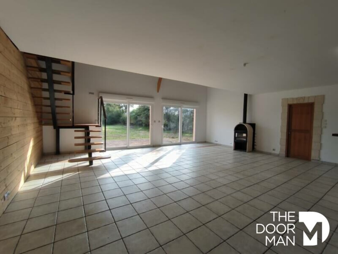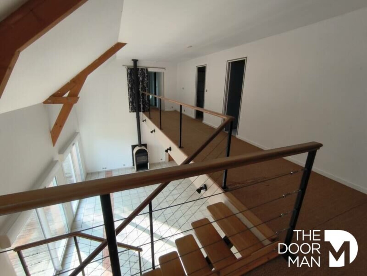 Au rez de chaussée vous entrez directement sur une grande pièce lumineuse de 72 M2, avec cuisine ouverte et poêle à bois.