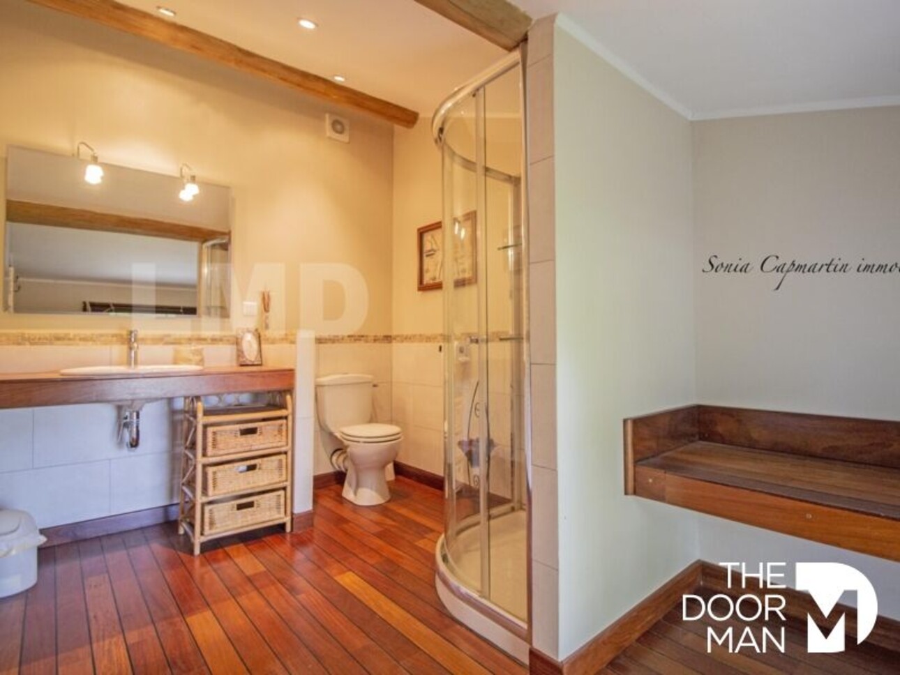 Sonia Capmartin vous propose ce bien où vous trouverez en rez-de-chaussée deux entrées autonomes ce qui peut permettre de recevoir des amis ou d'envisager une activités de chambres d'hôtes, un salon cosy, une salle à manger avec cheminée , d'une cuisine équipée avec une baie vitrée à galandage qui donne sur une terrasse lumineuse et couverte de 40M2 et sa loggia ainsi qu'un bureau. Sur le coin nuit vous découvrirez les deux chambres spacieuses avec leur salle d'eau WC privatives .